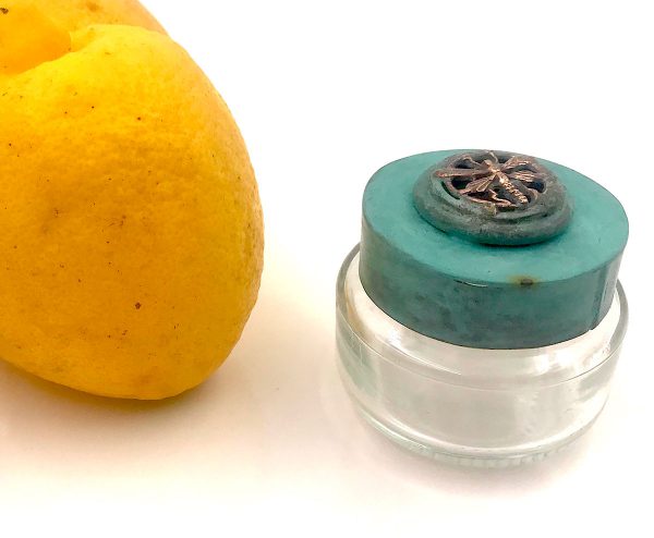 Kleine Flasche und recycelte Bronze mit Wasp Can Prunera Motiv (Soller)