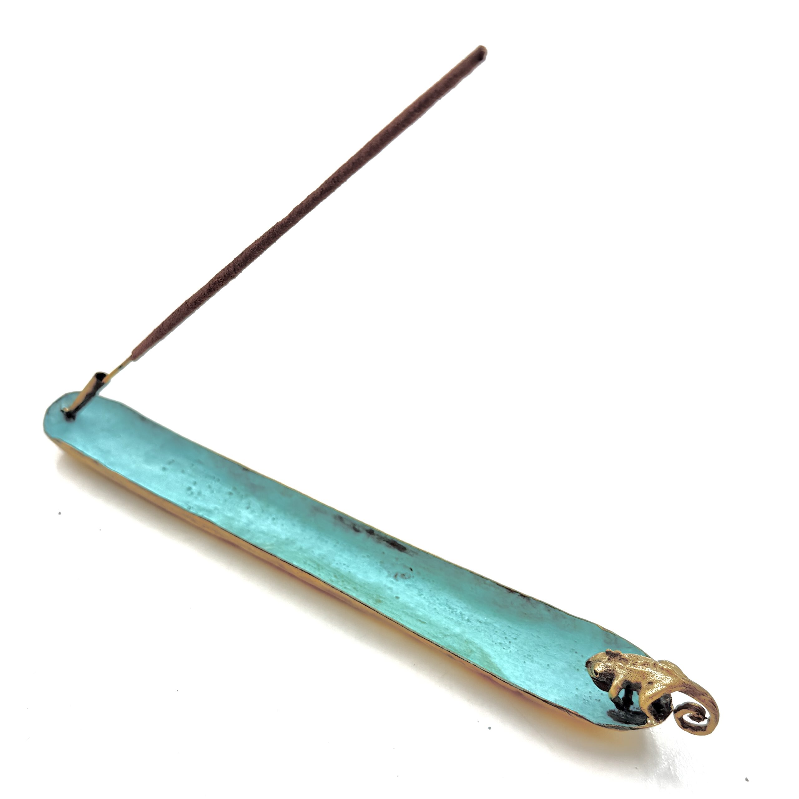 Original handgefertigter Räucherstäbchenhalter mit Chamäleon-Figur.