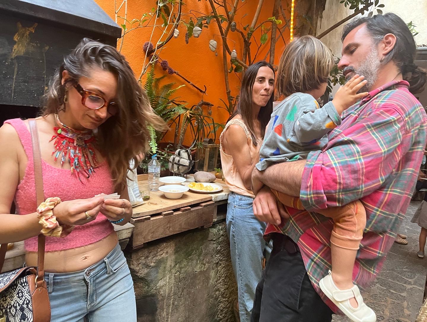 If we open on a Friday there are two and a half hours from 8:00 p.m. to 10:30 p.m. of vernissage and then from 10:30 p.m. the inauguration usually continues with a celebration in the courtyard / Workshop with live music (some group of local musicians ) and from 10:30 p.m., there is a small bar with drinks…