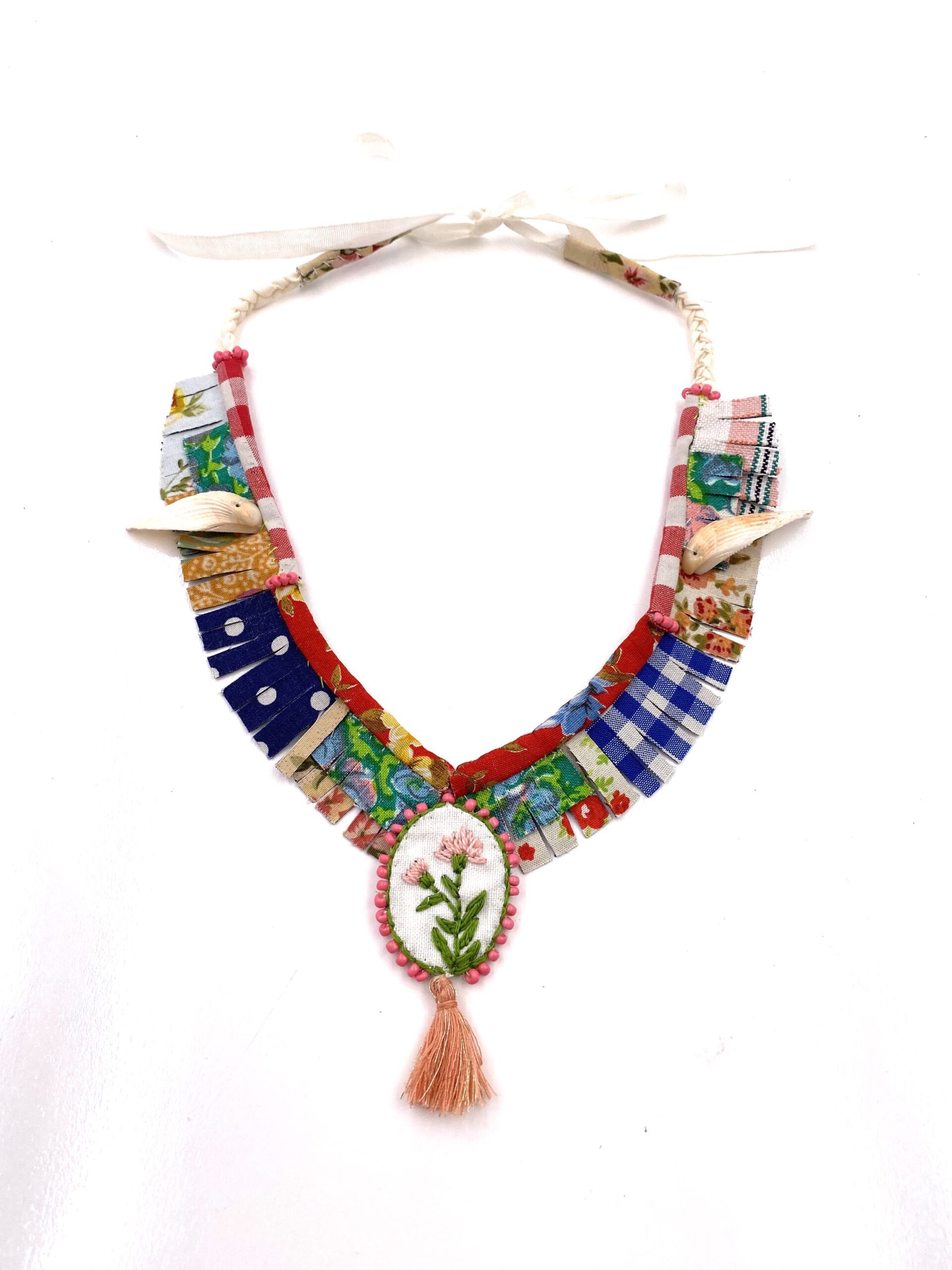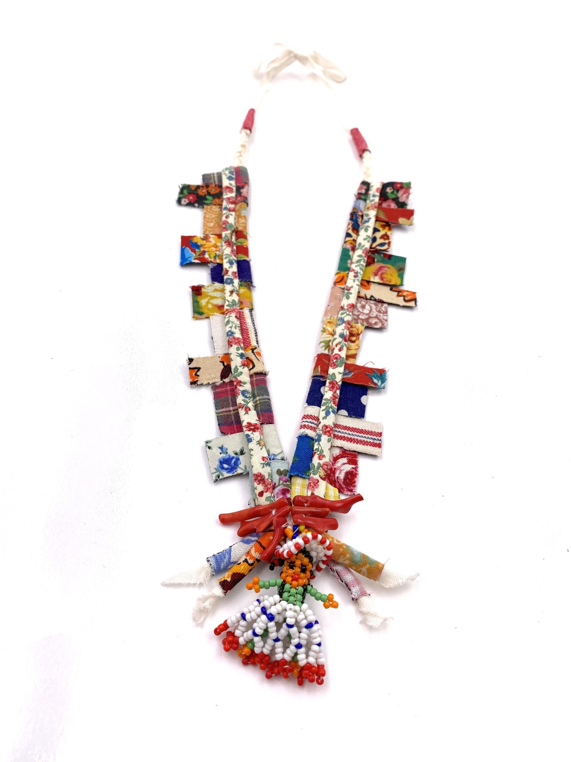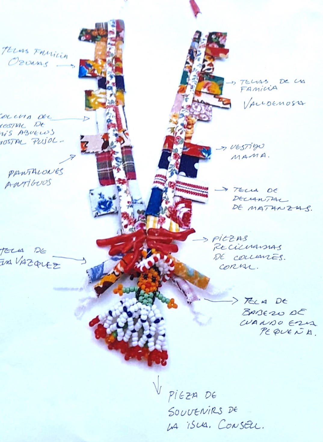Textile jewelry from the bowels of the textile memory of Mallorca, a design that explores the relationship between materials and emotions, typical of textiles, smells, colors, shelter, identity