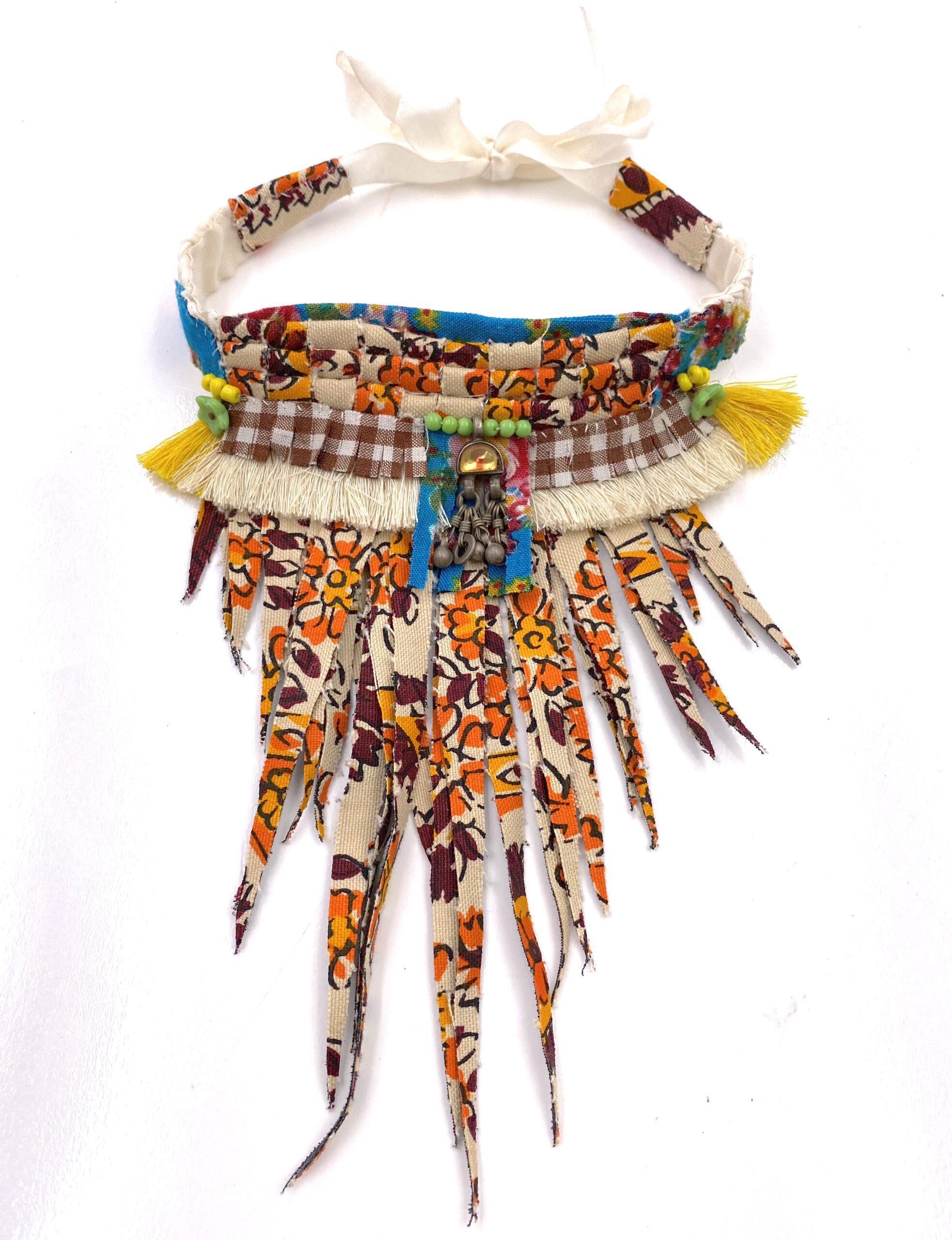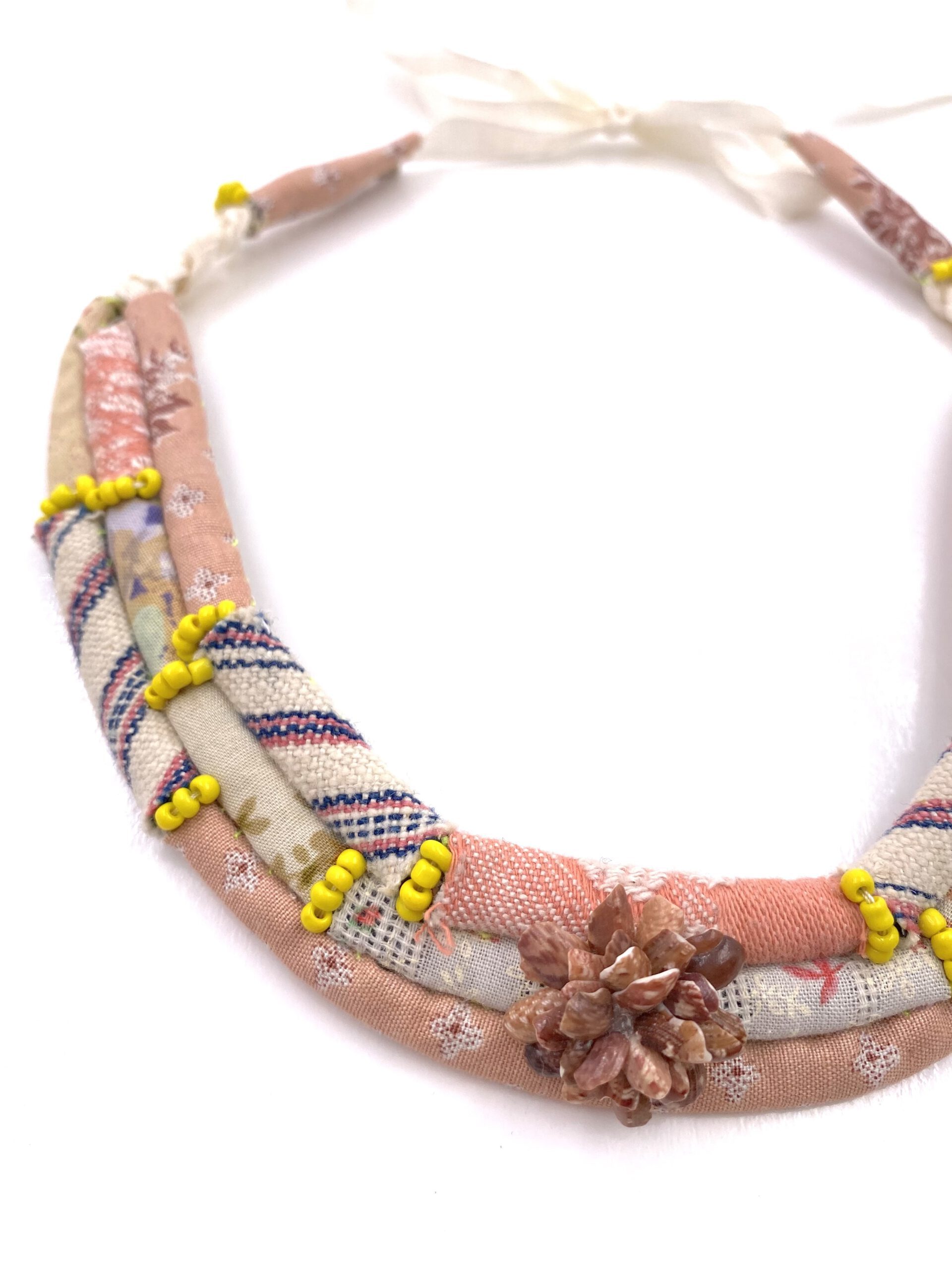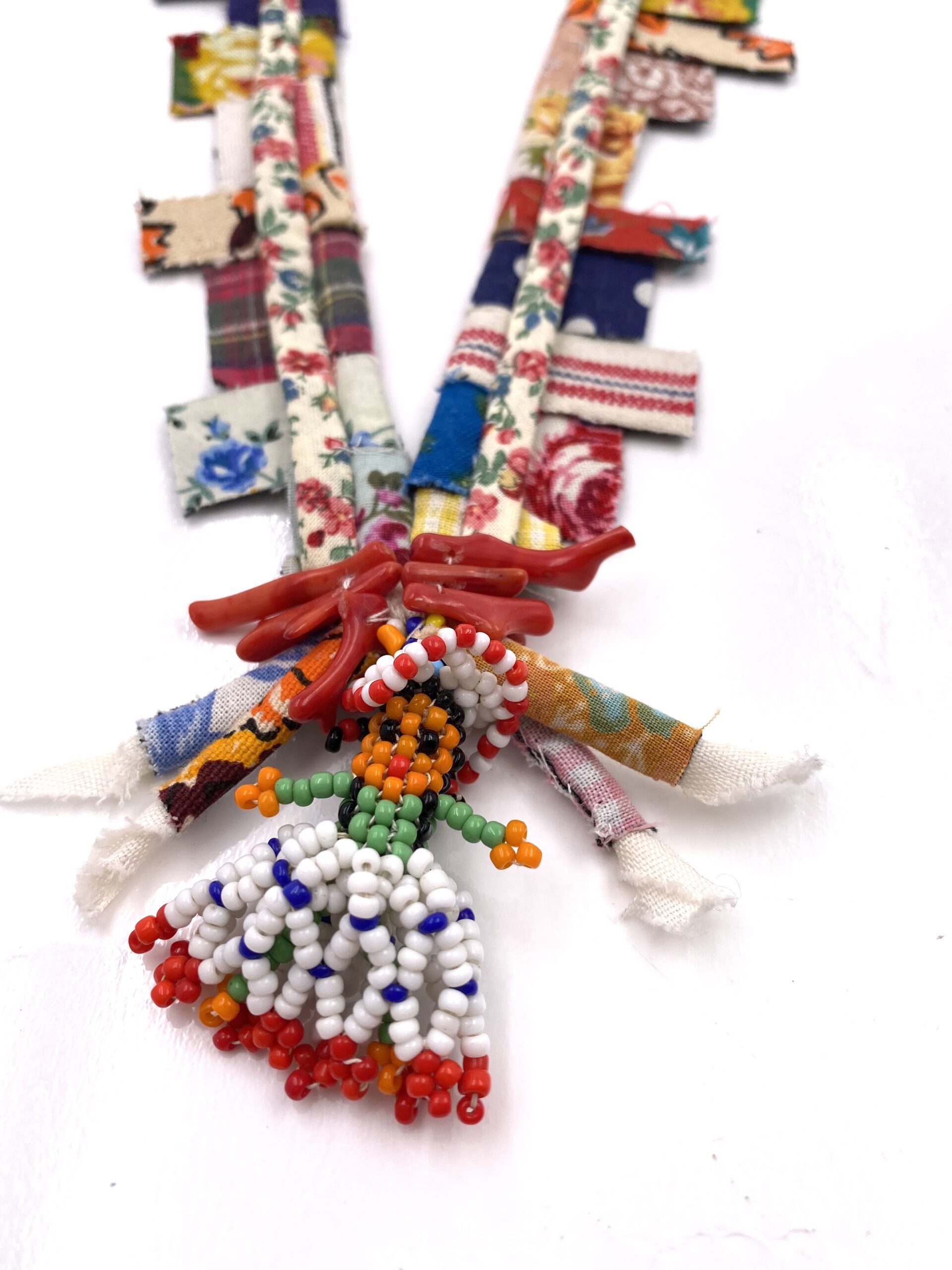Textile jewelry from the bowels of the textile memory of Mallorca, a design that explores the relationship between materials and emotions, typical of textiles, smells, colors, shelter, identity