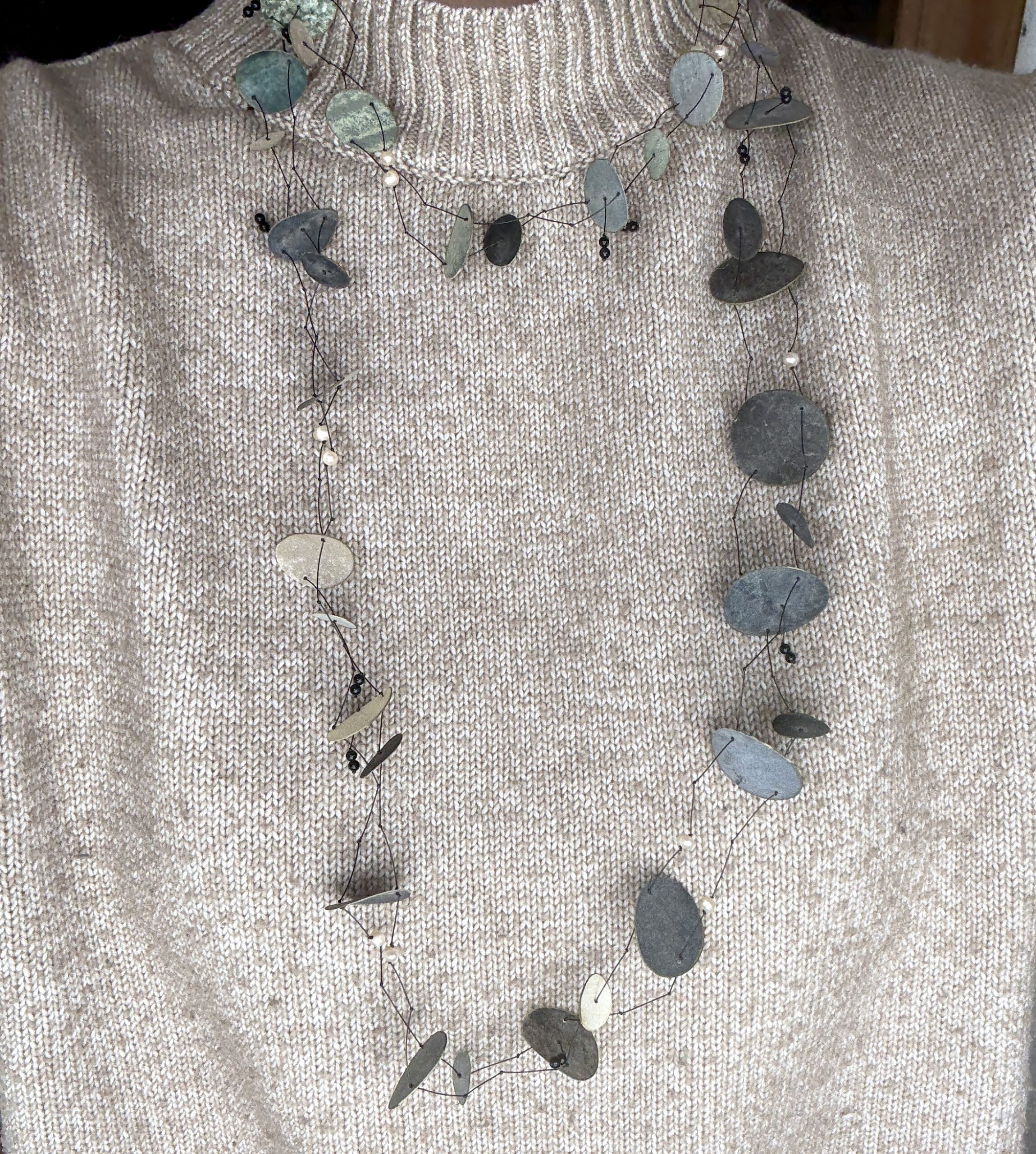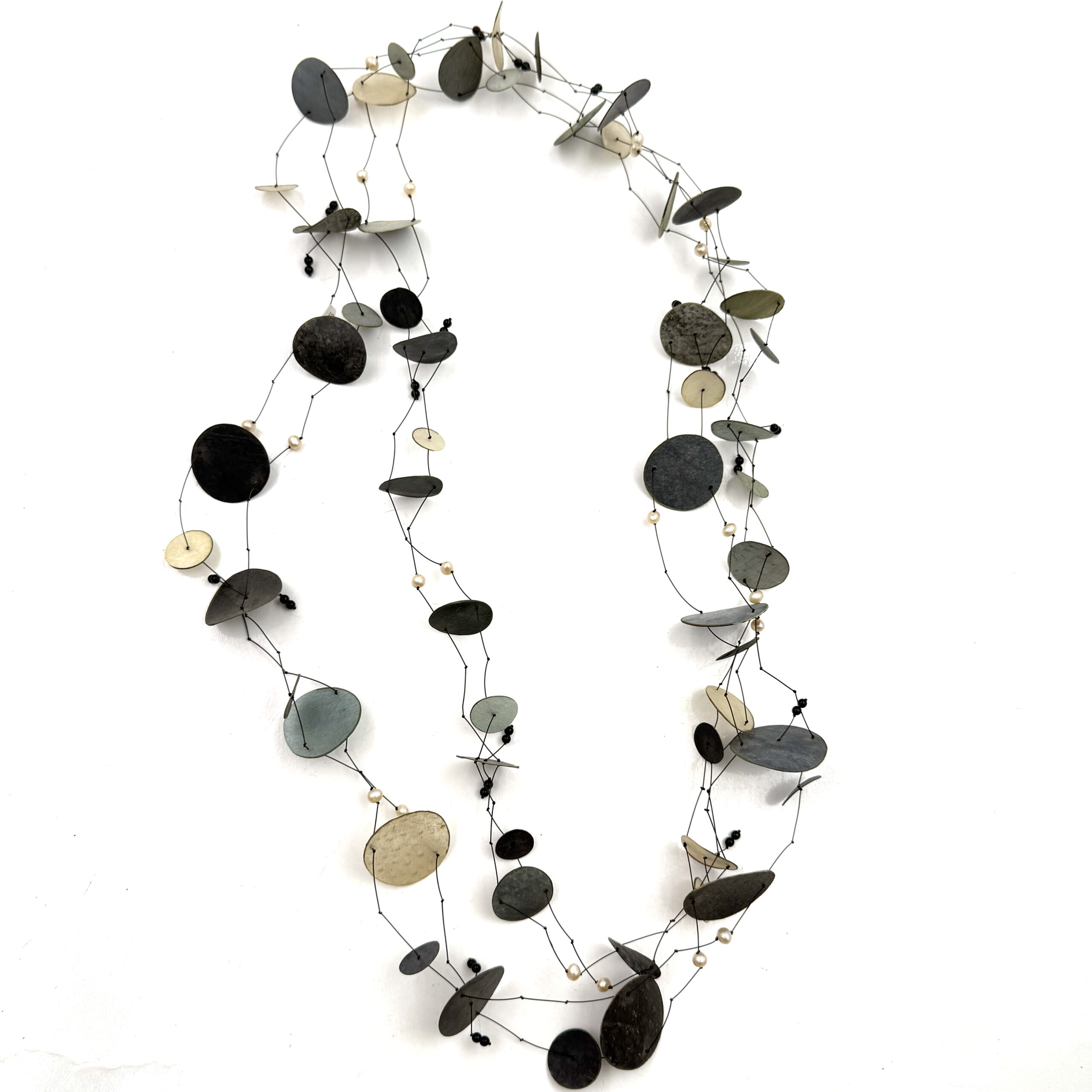 LONG NECKLACE WITH MULTICOLOR LEAVES MADE OF PARCHMENT BY HILDE JANICH