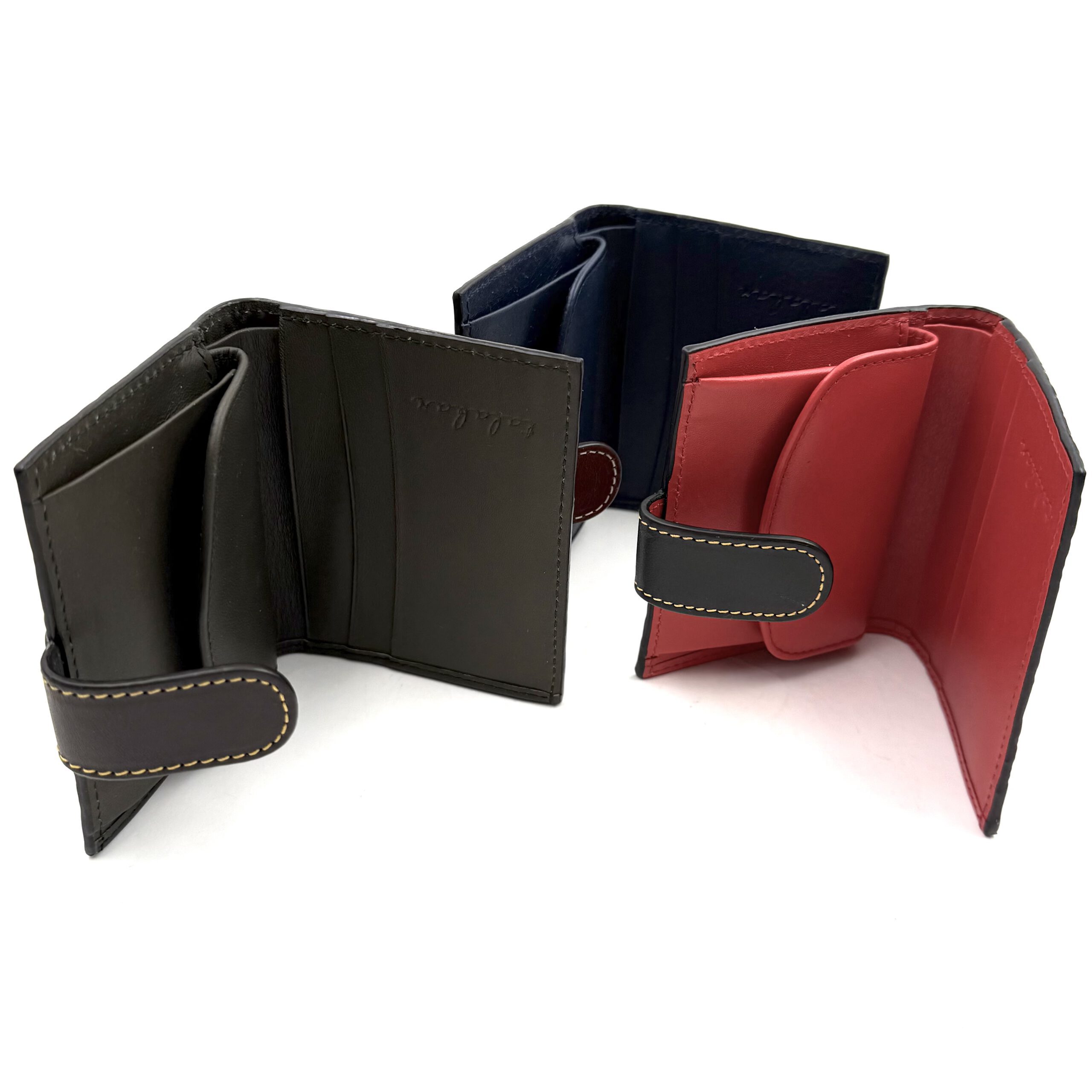 With a compartment for cards, bills, and a small coin purse.