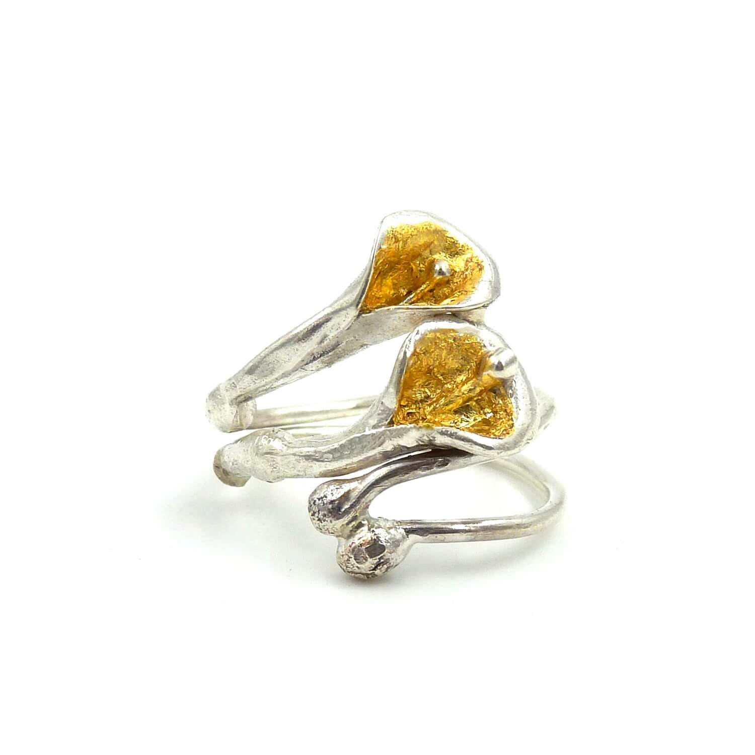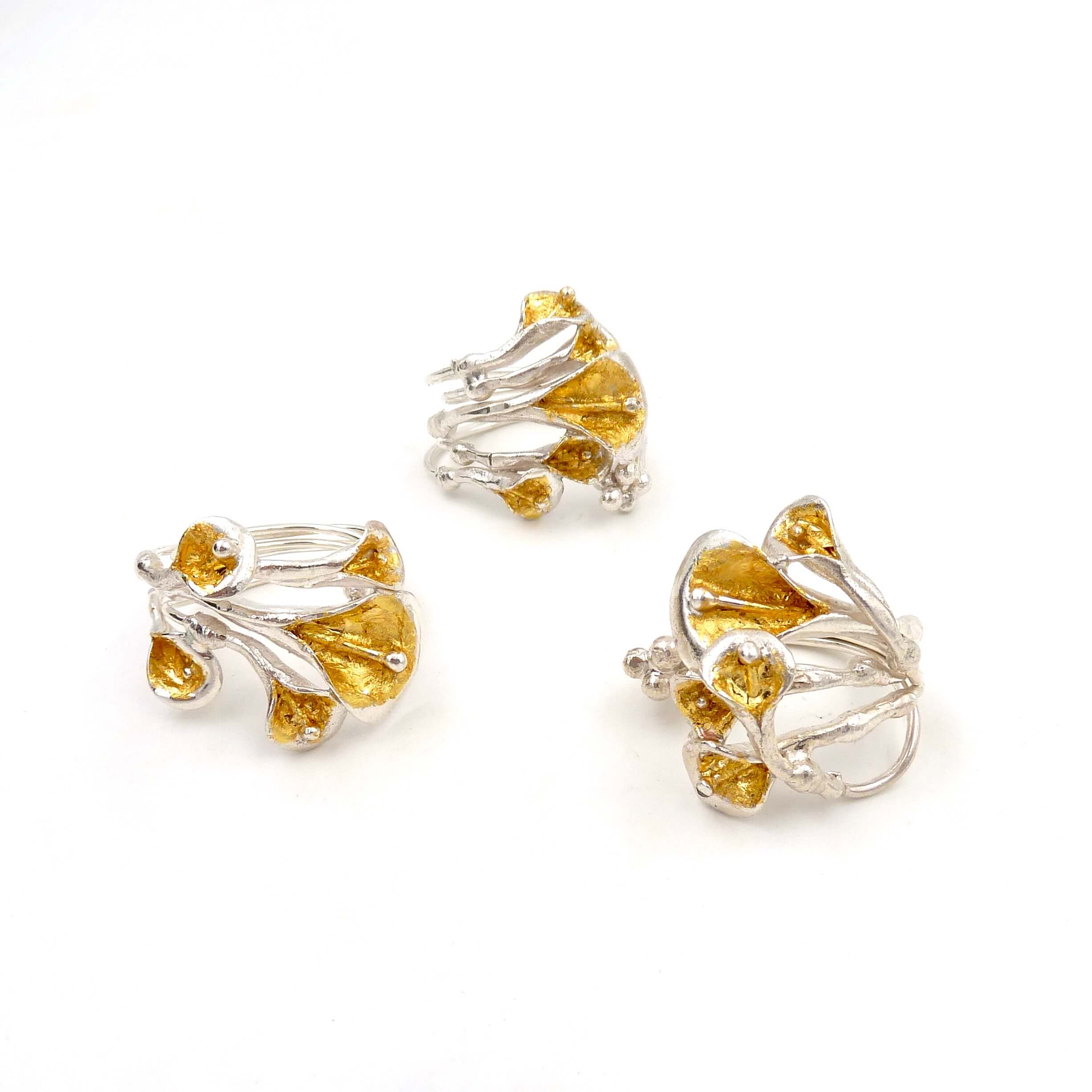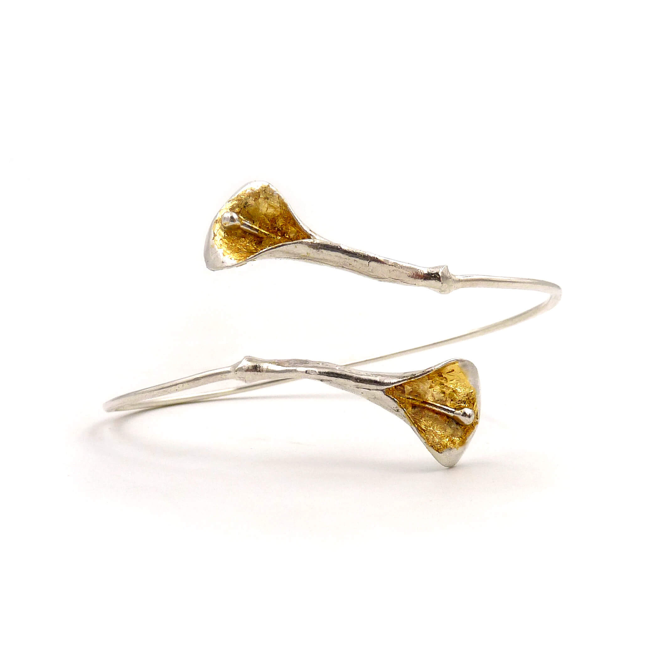 Toda la colección, está realizada en Plata 925 y con acabado de Pan de Oro de 22kt en el cáliz de la Flor.