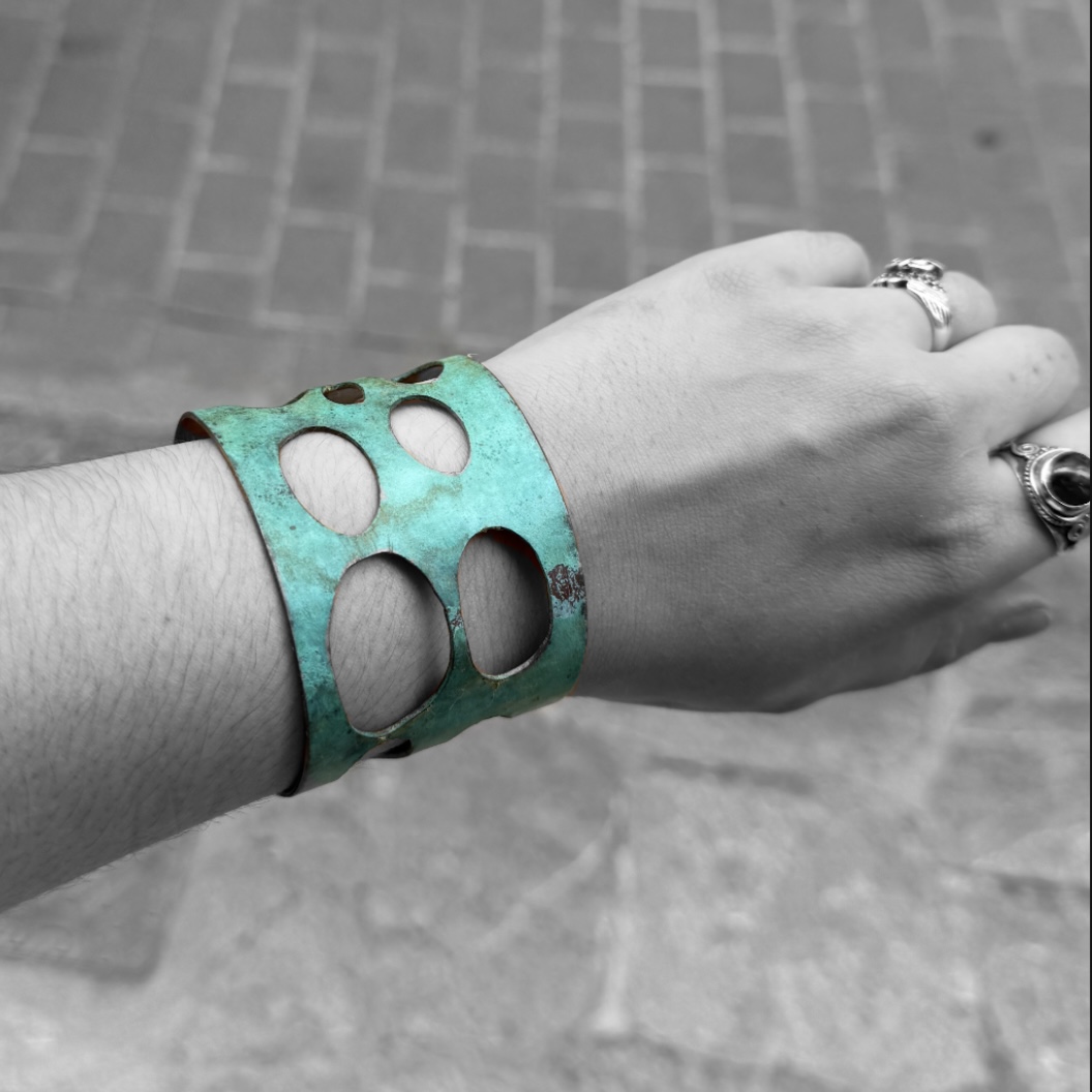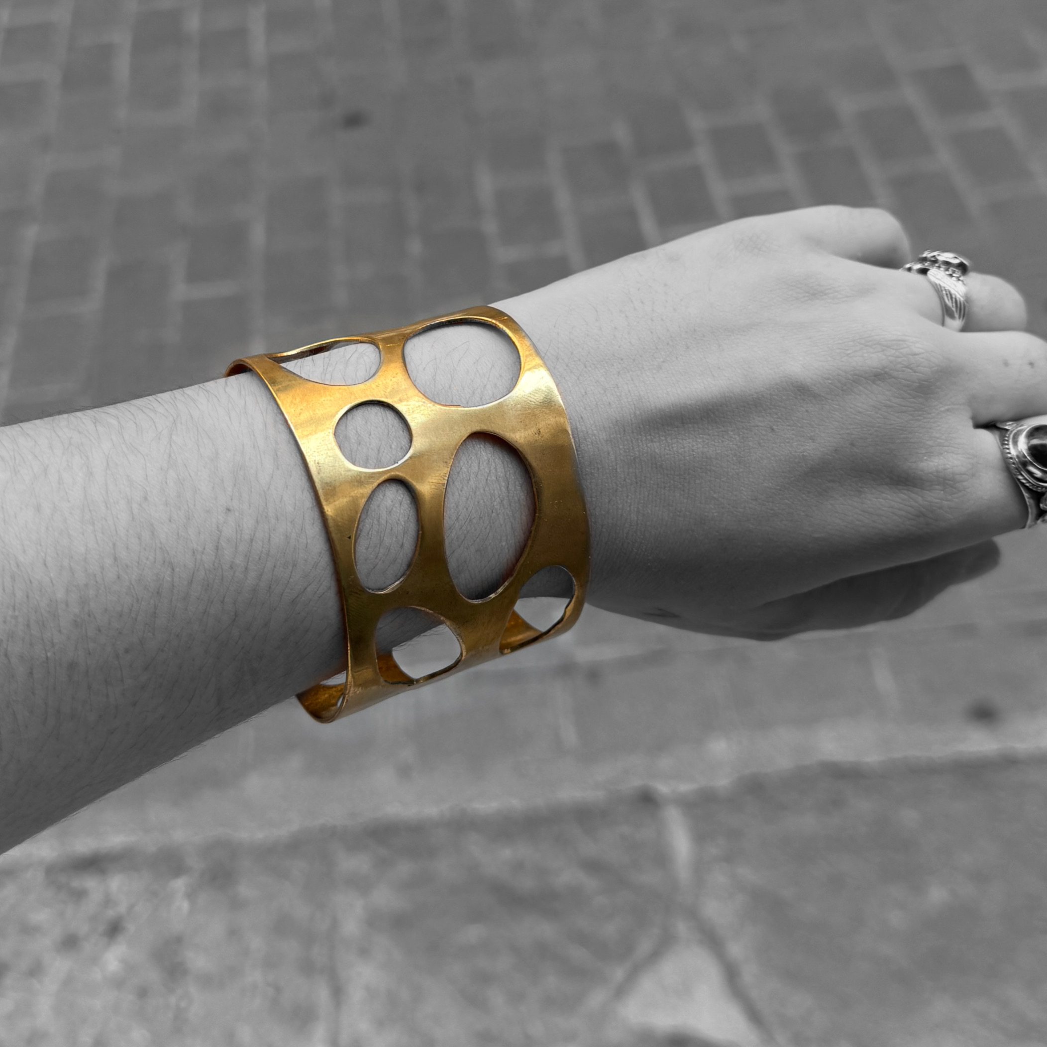 Bonito y moderno brazalete de bronce con pequeños agujeros que le da un toque personal a cualquier look!