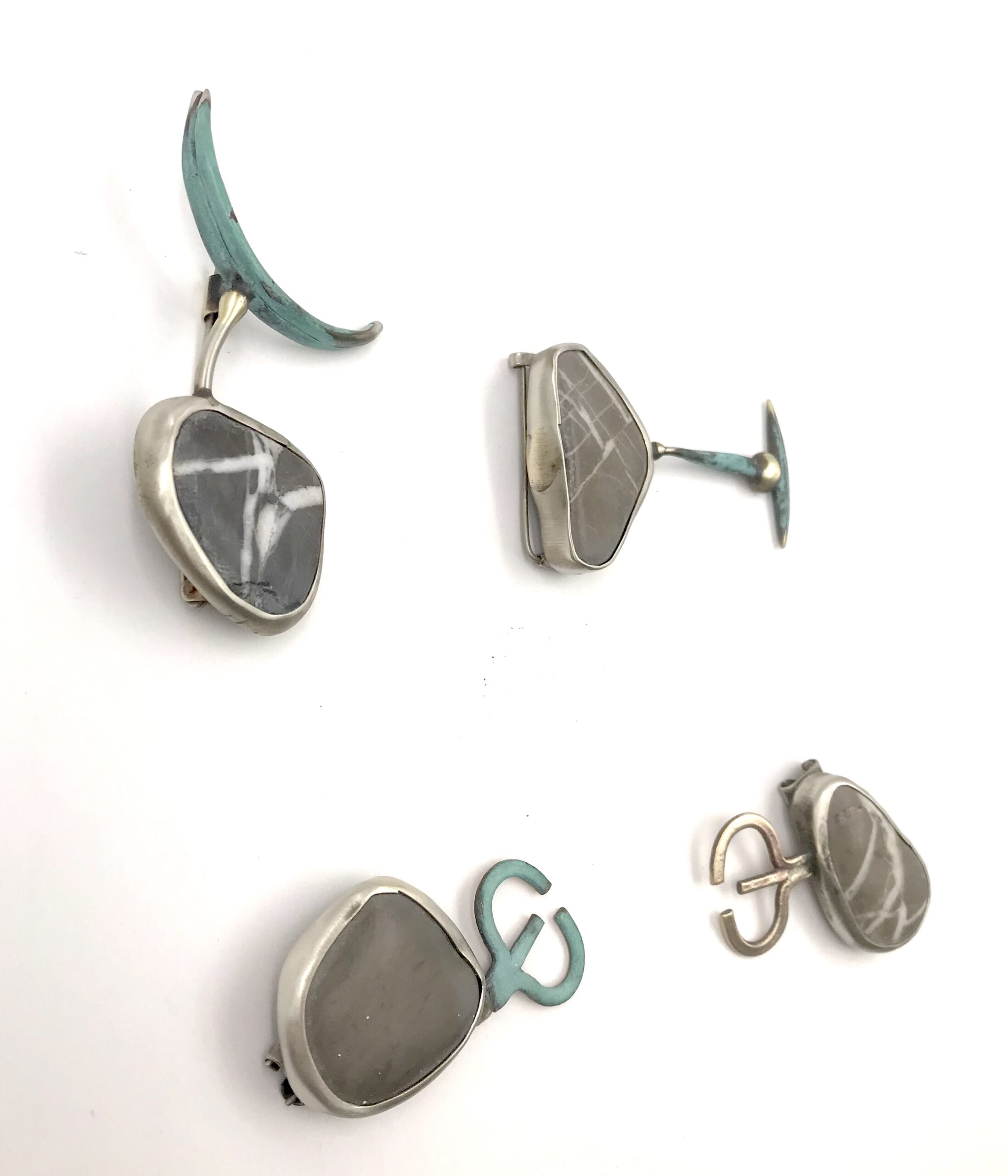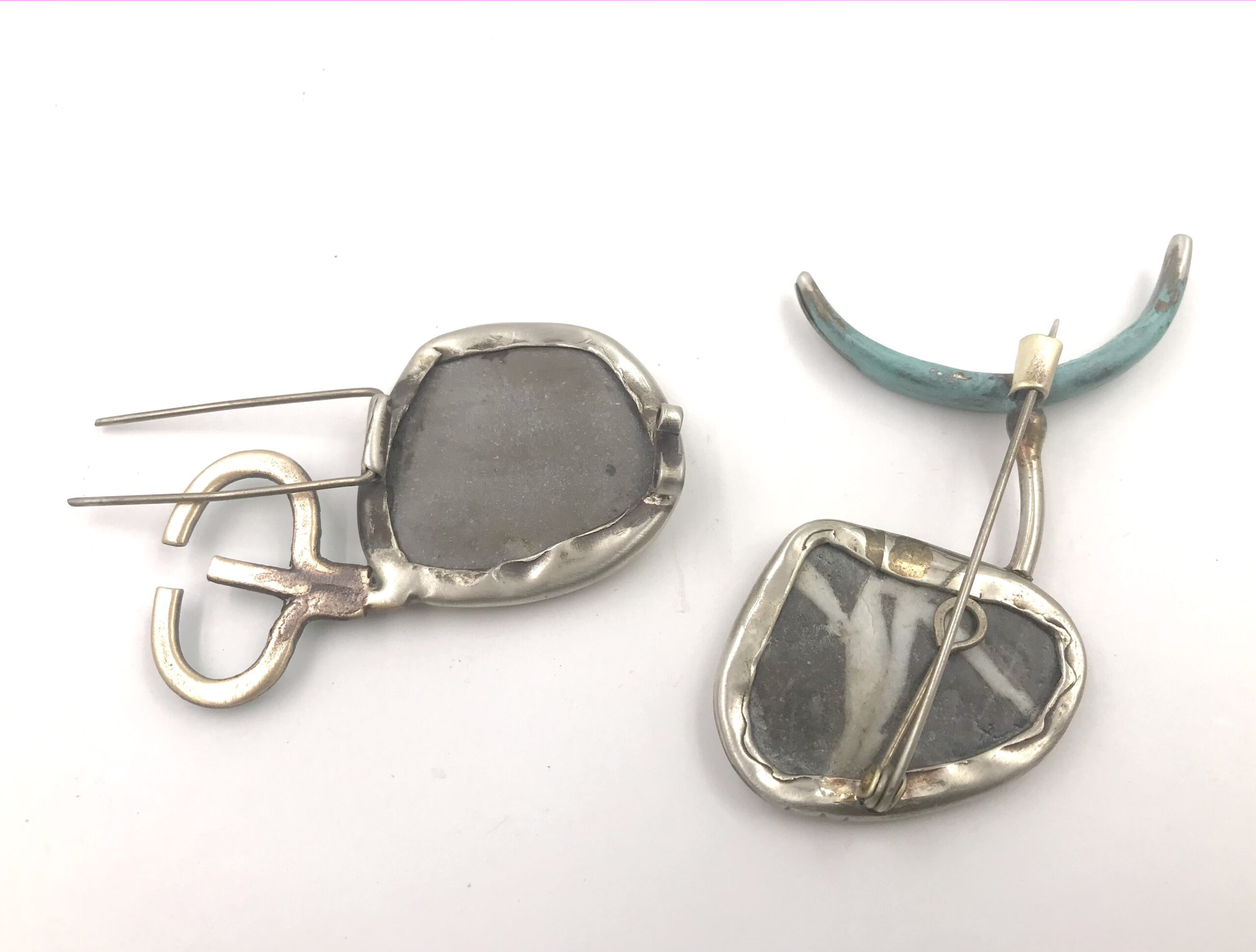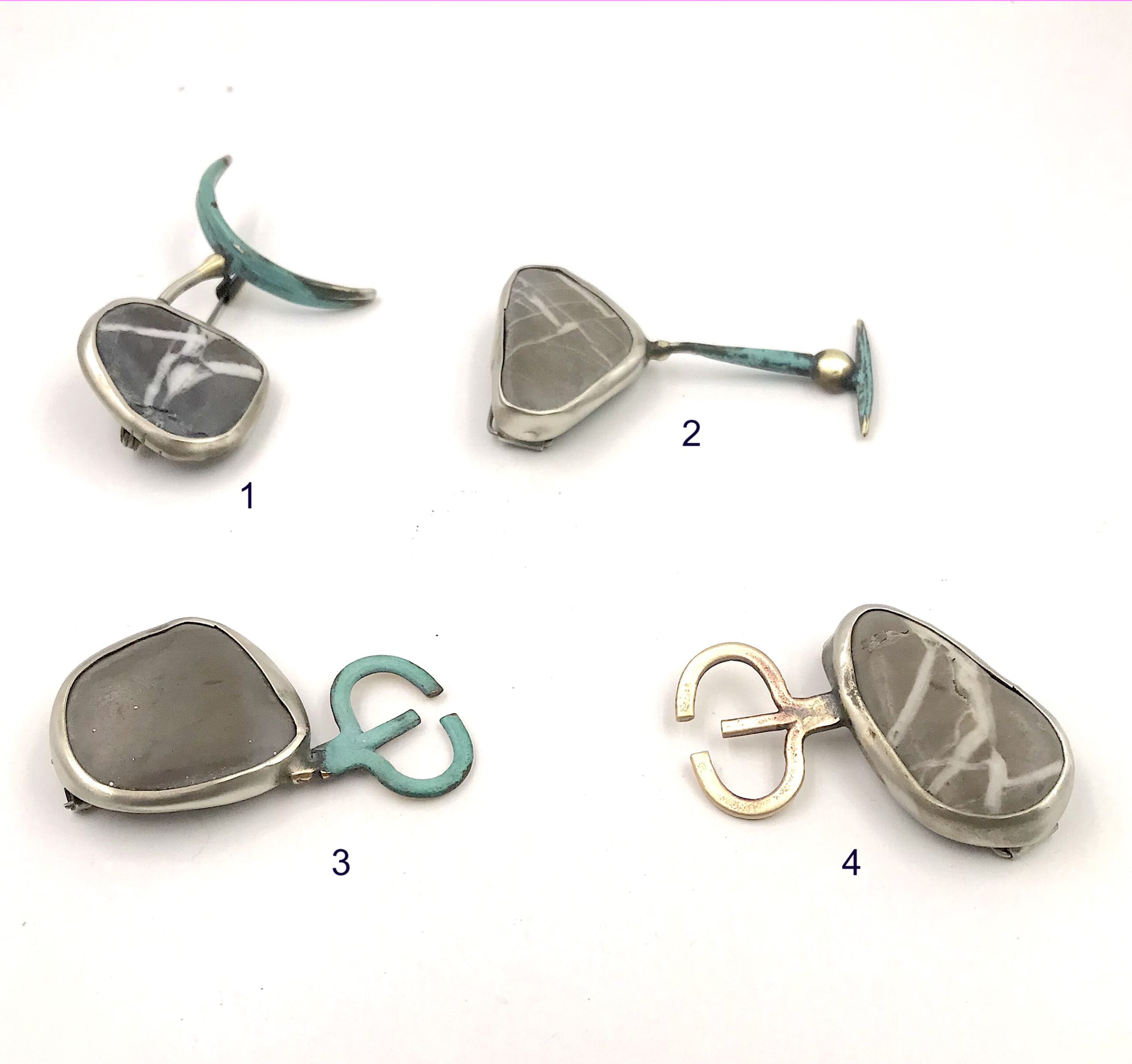 Broche Piedra de Mallorca Engastada Bronce/Alpaca – Autor Carlos Tellechea